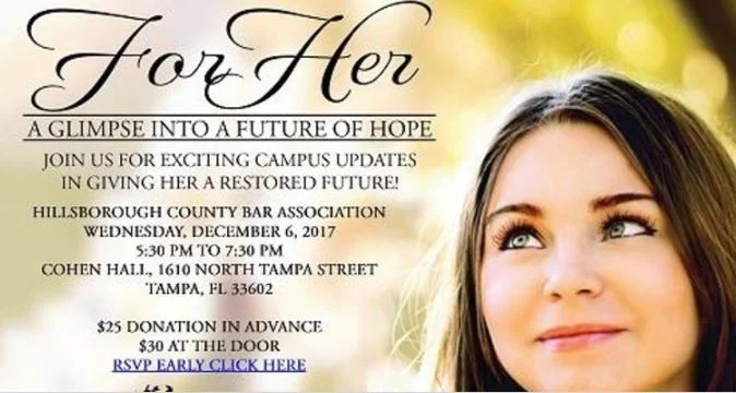 We are celebrating with a purpose to help provide a long-term therapeutic safe home campus for children when they are rescued by law enforcement here in Tampa Bay. We have exciting updates on the progress of our campus and how we are building a bright future For Her! Our facility will provide a safe place to find healing, hope, and renewed life. Please join us in making a difference For Her!
